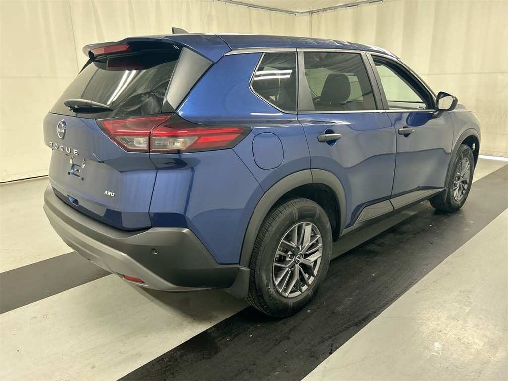 Certified. 2023 Nissan Rogue S AWD CVT with Xtronic 1.5L I3 Turbocharged DOHC 12V LEV3-ULEV50 201hp AWD. Caspian Blue Metallic